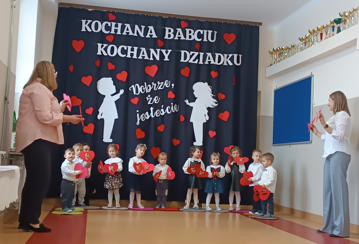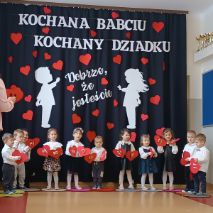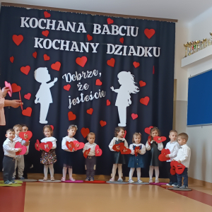Pani kierownik przywitała szanownych gości, składając im najserdeczniejsze życzenia. Dziadkowie mieli okazję podziwiać umiejętności artystyczne swoich wnuków, którzy z przejęciem prezentowali je przed publicznością. Były śpiewy połączone z tańcem, wierszyk oraz wzruszający wspólny taniec z Dziadkami. Na koniec uroczystości maluchy wręczyły wcześniej przygotowane laurki, a rodzice zaprosili na słodki poczęstunek.