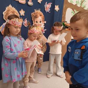 Już od samego rana panowała uroczysta atmosfera. Dziewczynki wyglądały przepięknie w swoich kolorowych koronach, które podkreślały, jak ważne i wyjątkowe są tego dnia. Każda z małych dam mogła poczuć się jak prawdziwa księżniczka.