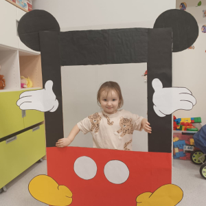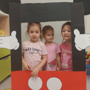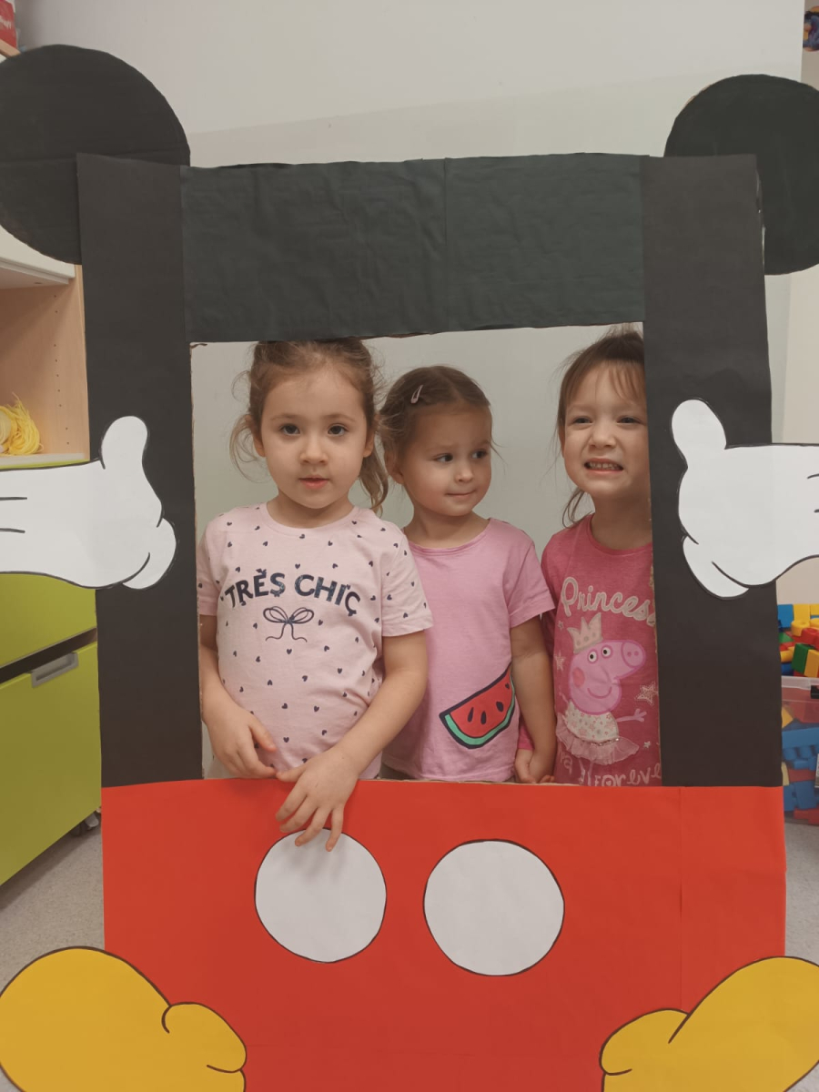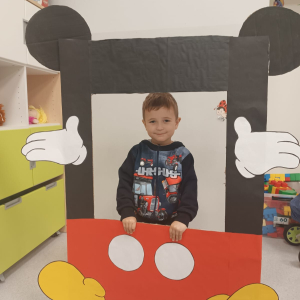 Nie mogło zabraknąć w naszym klubiku świętowania tego wyjątkowego dnia:-) Czytaliśmy książeczkę o Mickey i poznawaliśmy imiona jego przyjaciół. Dzieci zrobiły piękną pracę plastyczną, a potem, z wielką radością, pozowały w przygotowanej fotobudce.