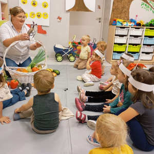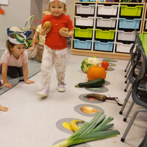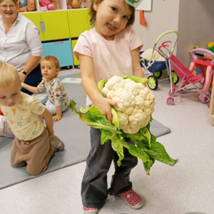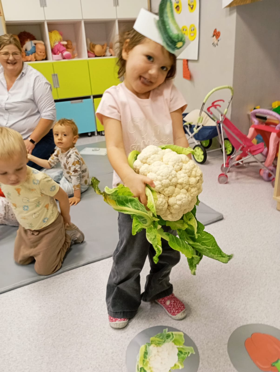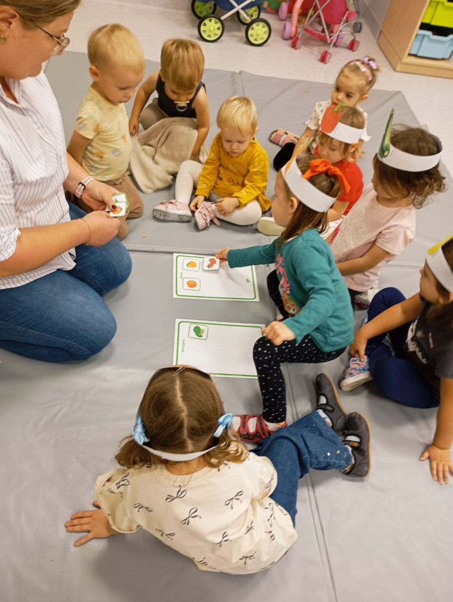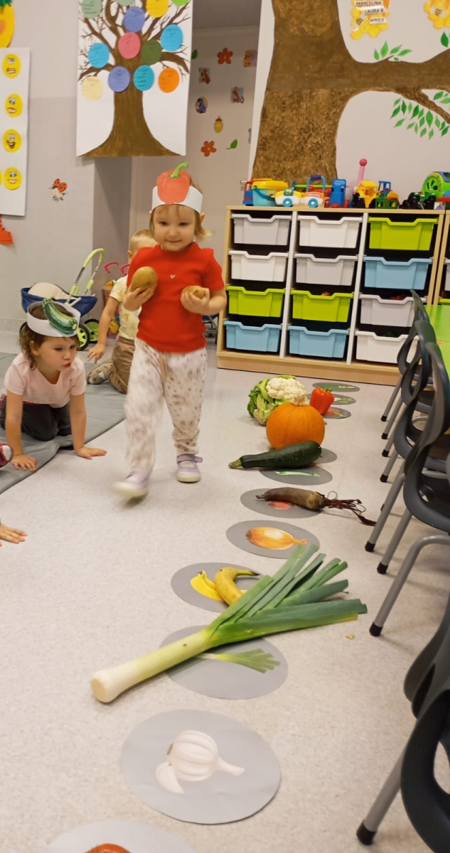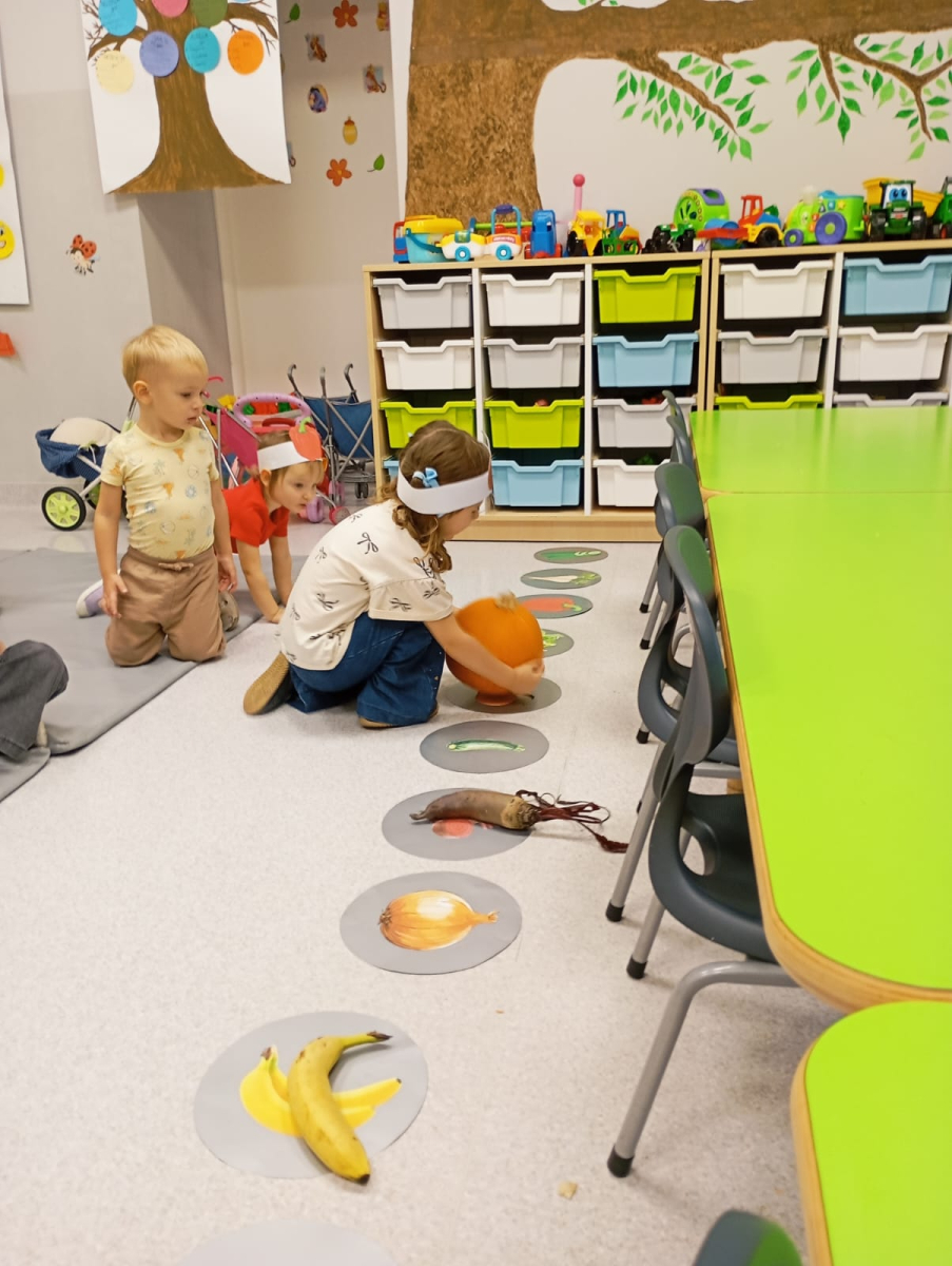 17 października wraz z Biedronkami obchodziliśmy Dzień Owoców i Warzyw. W tym dniu uświadamialiśmy maluchom, jak ważną rolę w naszym życiu spełniają owoce i warzywa. Na dzieci czekał ogromny kosz wypełniony przeróżnymi produktami. Dzieci odgadywały nazwy, dotykały i wąchały, a następnie segregowały, czy dany produkt należy do grupy owoców czy warzyw. Kolejnym zadaniem było odłożenie warzywa bądź owocu na kartę z tym samym symbolem.