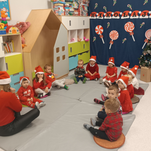 Zgodnie z tradycją, również w naszym klubiku obchodziliśmy mikołajkowe święto. Dzieci pięknie ubrane wyczekiwały spotkania z Świętym Mikołajem. Kiedy nadeszła wyczekiwana chwila, Biedronki zaśpiewały wcześniej przygotowaną piosenkę, by potem mogły z uśmiechem na twarzy odebrać prezenty od Świętego Mikołaja.